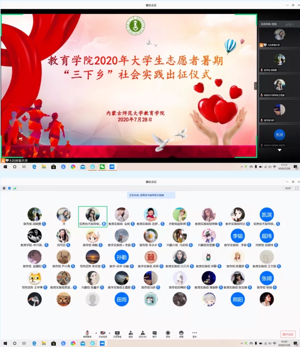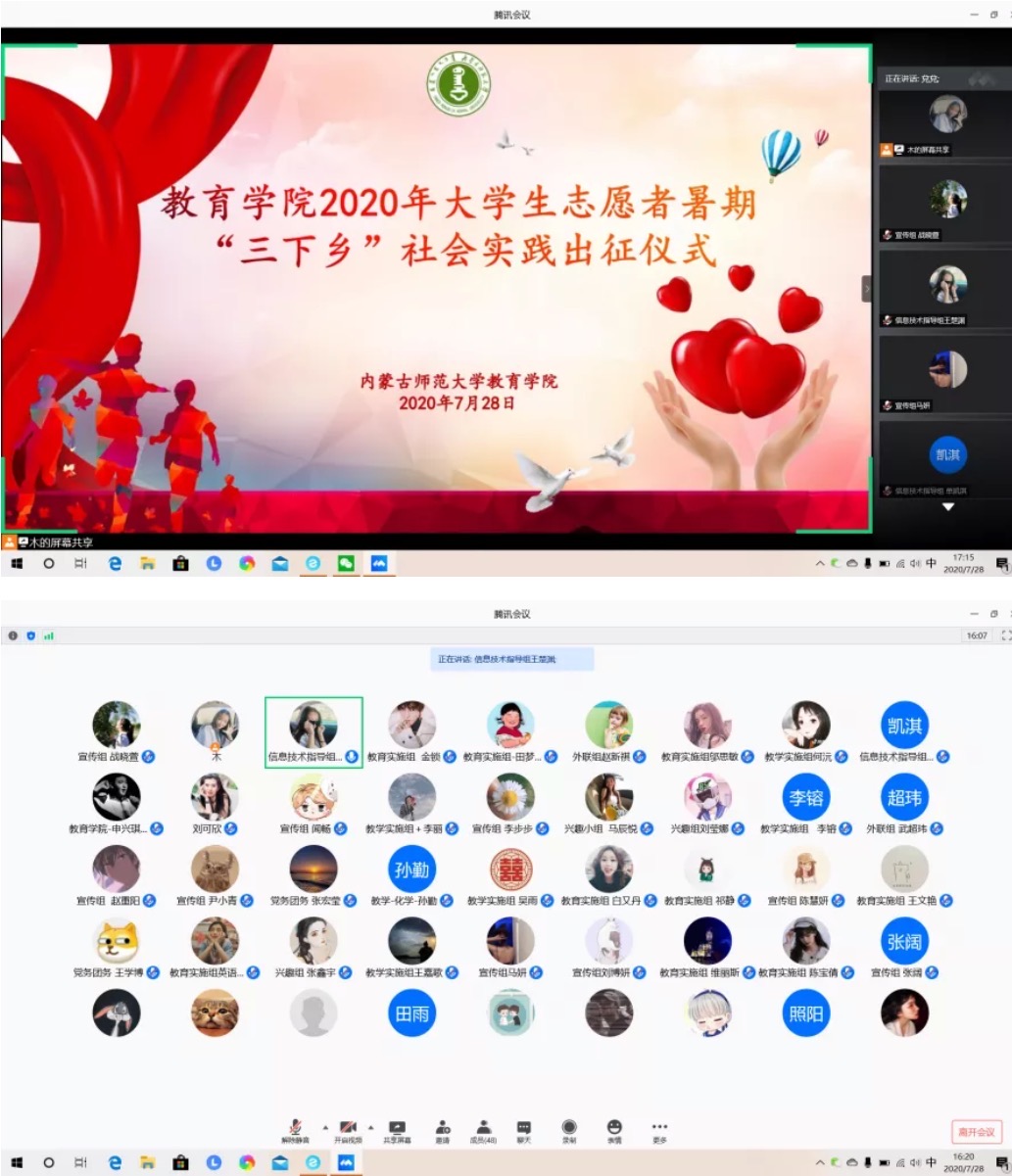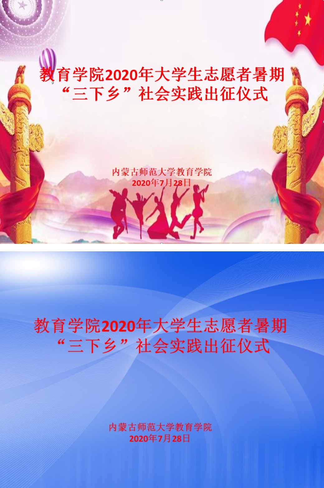 2020年7月28日晚上,永利官网举办了暑期云端三下乡社会实践活动出征仪式。提前一天,我们信息技术指导组着手制作出征仪式所需定屏。我制作了两版初稿。