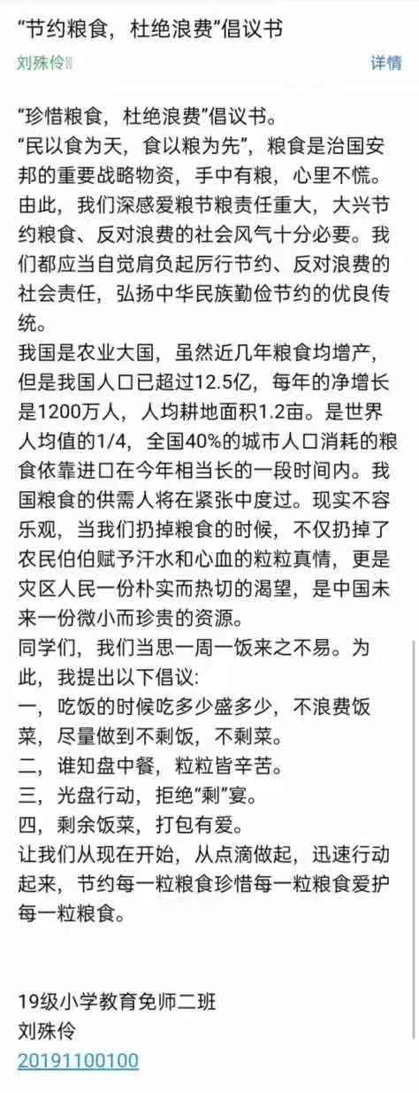 犹记锄禾日当午,最累汗滴禾下土,一粒粮食一分苦,该当珍惜心有数,粮食是地球赐给我们有限的礼物,爱护粮食就是珍惜生命之源,从同学们的一份份承诺中我们可以看到他们对于粮食的重视,也希望每一个人都可以拿出实际行动,为党为国家分忧,把爱惜粮食、节约粮食的活动扎扎实实地开展下去。