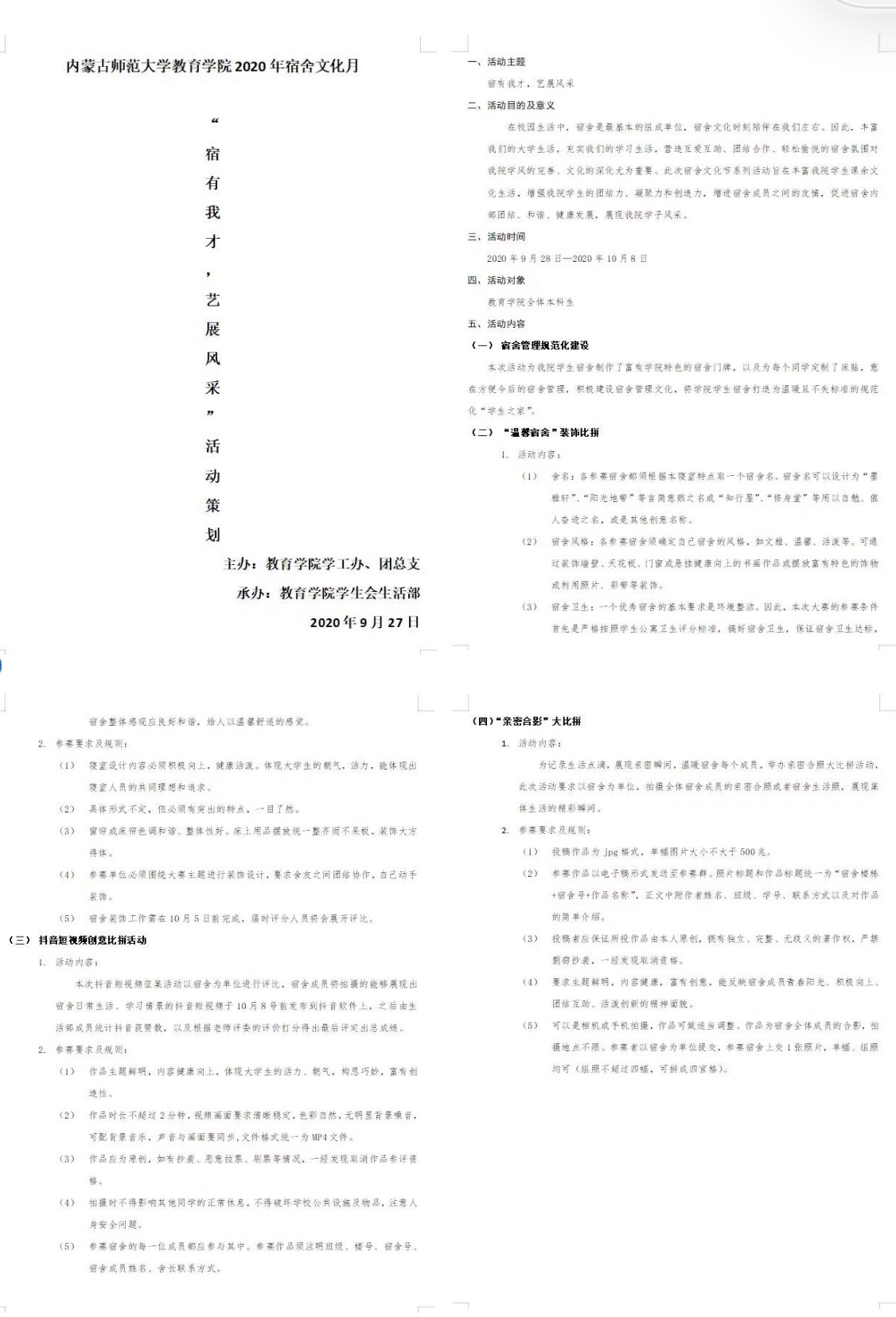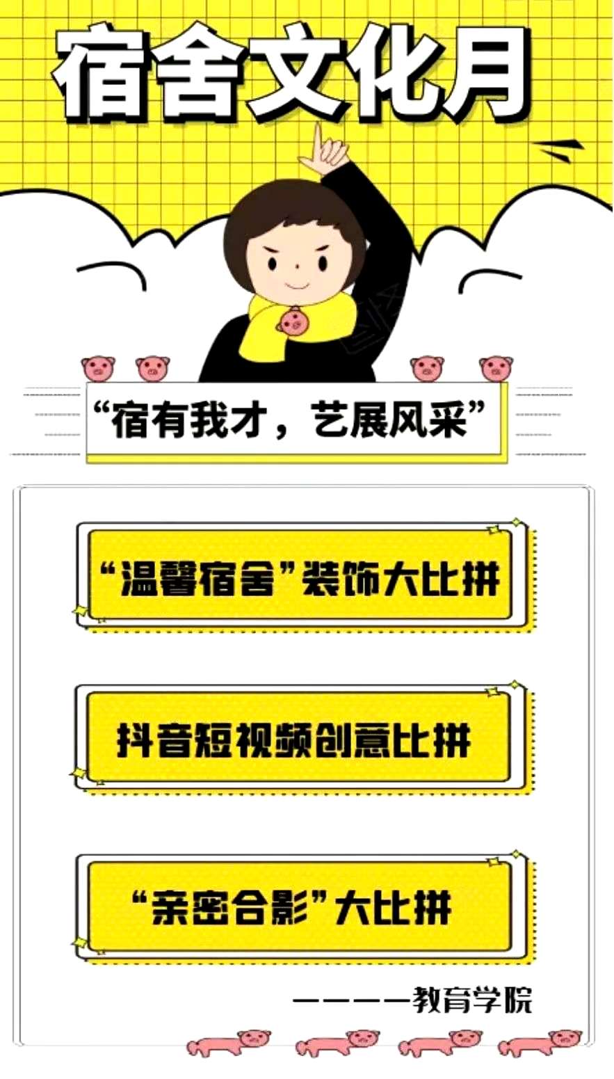 此次宿舍文化节系列活动旨在丰富永利官网学生课余文化生活,增进宿舍成员之间的友情,促进宿舍内部团结、和谐、健康发展,坚定学生以寝为家的信念,激发对生活的热爱,展现永利官网学子风采。欢迎同学们积极参与!