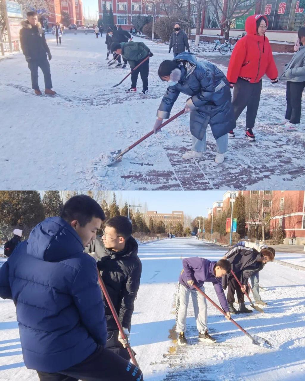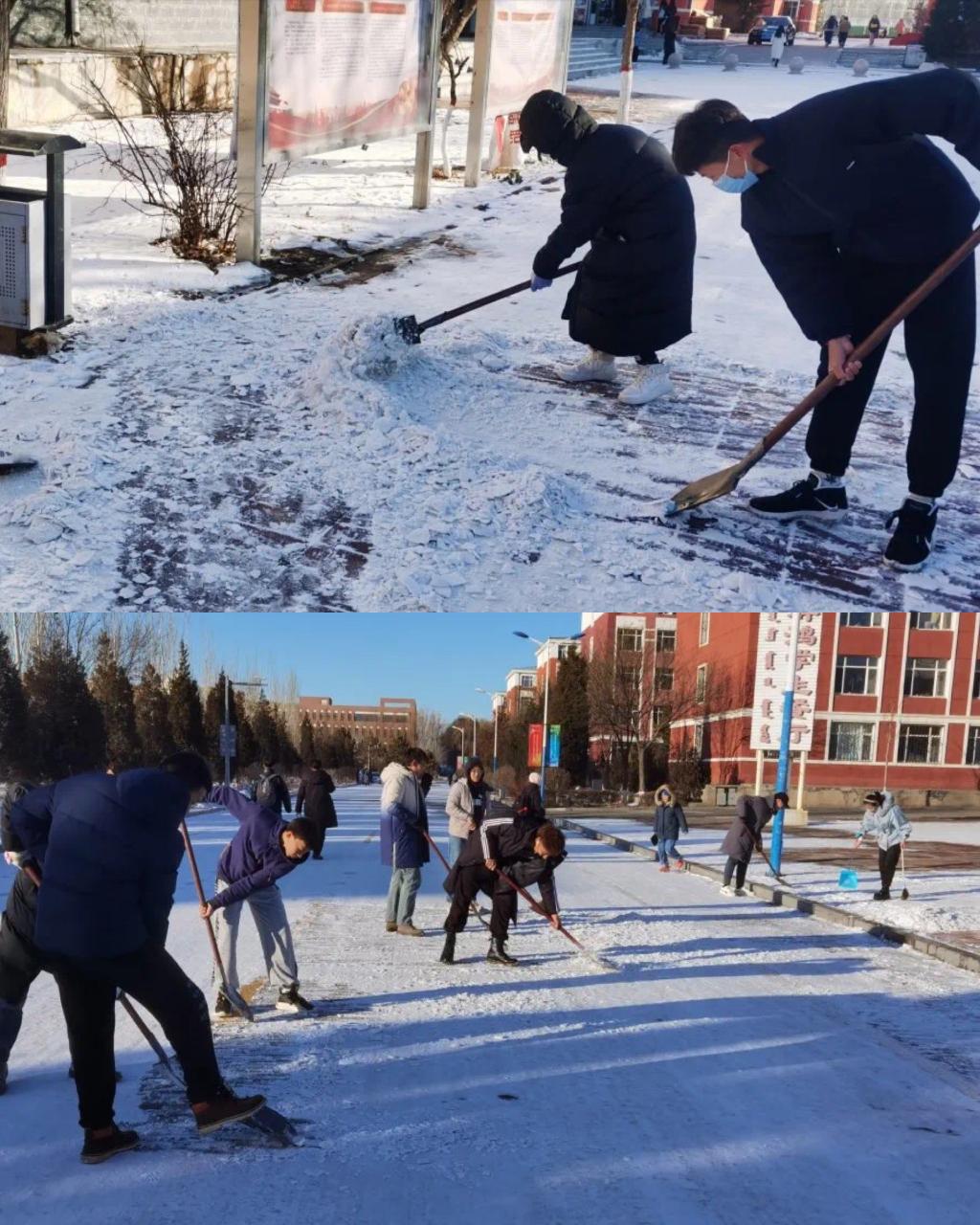 2020年11月21日,一场冬雪让师大的校园内银装素裹,分外美丽。为确保师生校园内交通安全,出行畅通,11月22日,yl7703永利官网组织2020级各班学生及学生会成员对群鸿餐厅周围积雪进行清扫。