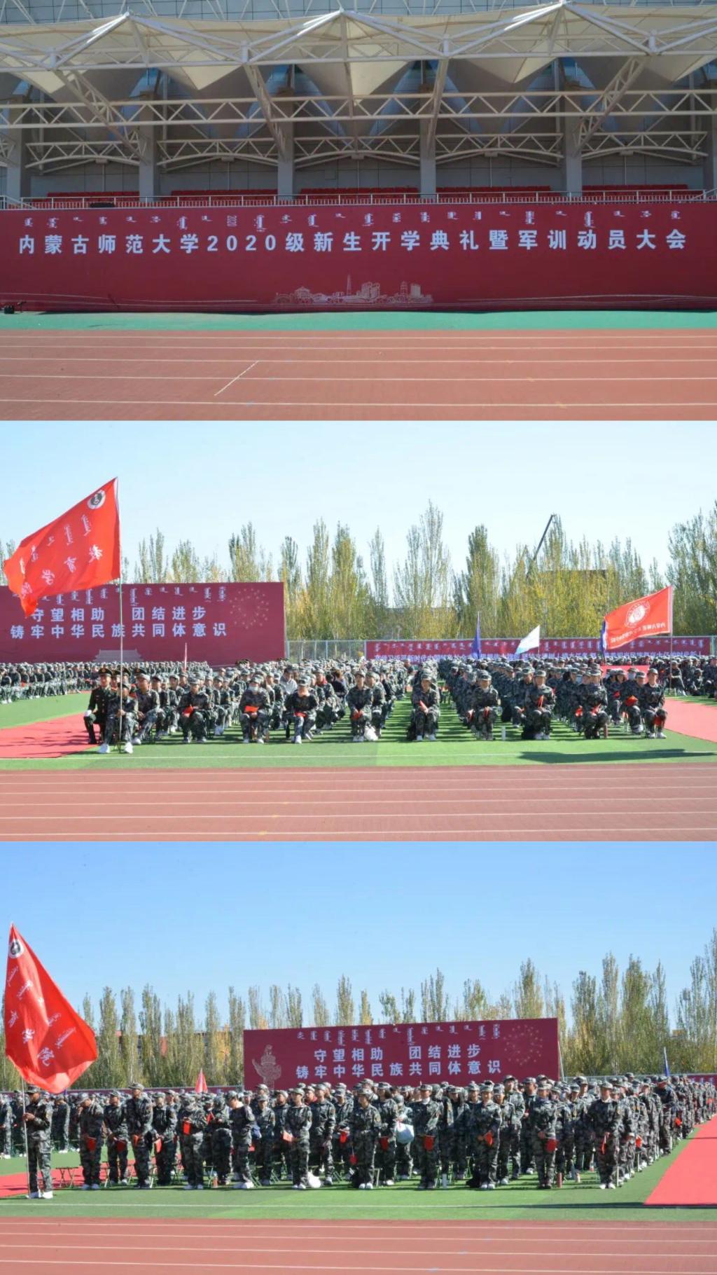 2020年10月12日上午,我校在盛乐校区东操场召开2020级新生开学典礼暨军训动员大会。yl7703永利官网党委书记铁木尔、党委副书记、副院长斯琴满都呼、学工组于国佳老师、孙悦老师、张玉老师、苏日娜老师出席本次动员大会,2020级全体新生参加。