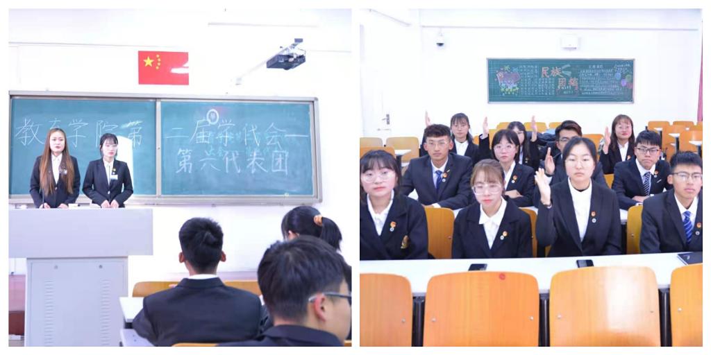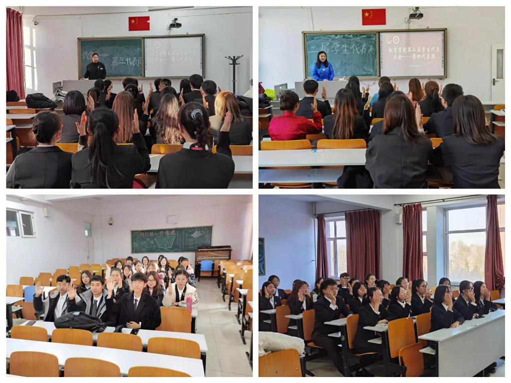 第二项议程:yl7703永利官网党委书记铁木尔致开幕词。他对本次学代会的召开给予希冀,并提出学生应着眼大局,准确定位。贯彻习近平总书记所提出的青年一代有理想有担当,坚定理想信念的方针。他还指出学生代表要有代表作用,要展现整体素质和精神风貌、严于律己,树立好榜样。努力培养学生成为应用型、 复合型人才,增强青年大学生预见性、主动性、实践性、方向性,树立正确三观。坚定对党和政府的信任,形成校园环境和谐、师生关系和谐的良性循环。坚持教育为人民服务,学生代表为学生服务的宗旨。