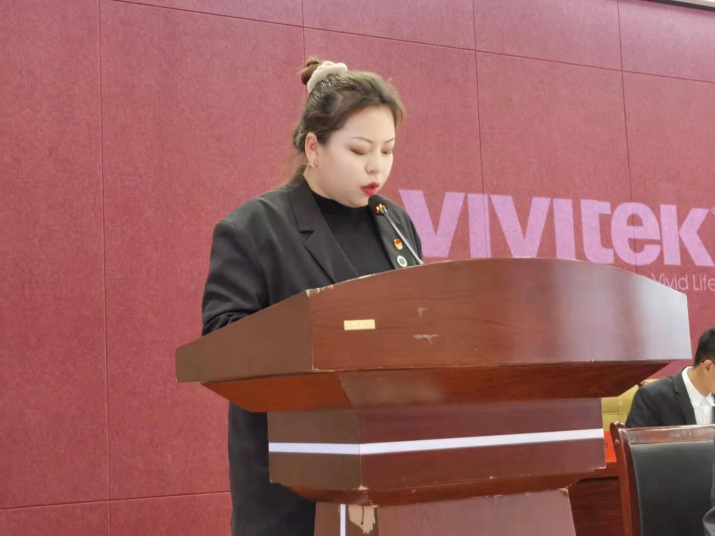 会议第三项议程:校学生会王雨桐代表致贺词。她总结了上届学代会会后的显著成果,对学代会的举办表示肯定。并对本次学代会的召开和各项议程的顺利进行给予期望。