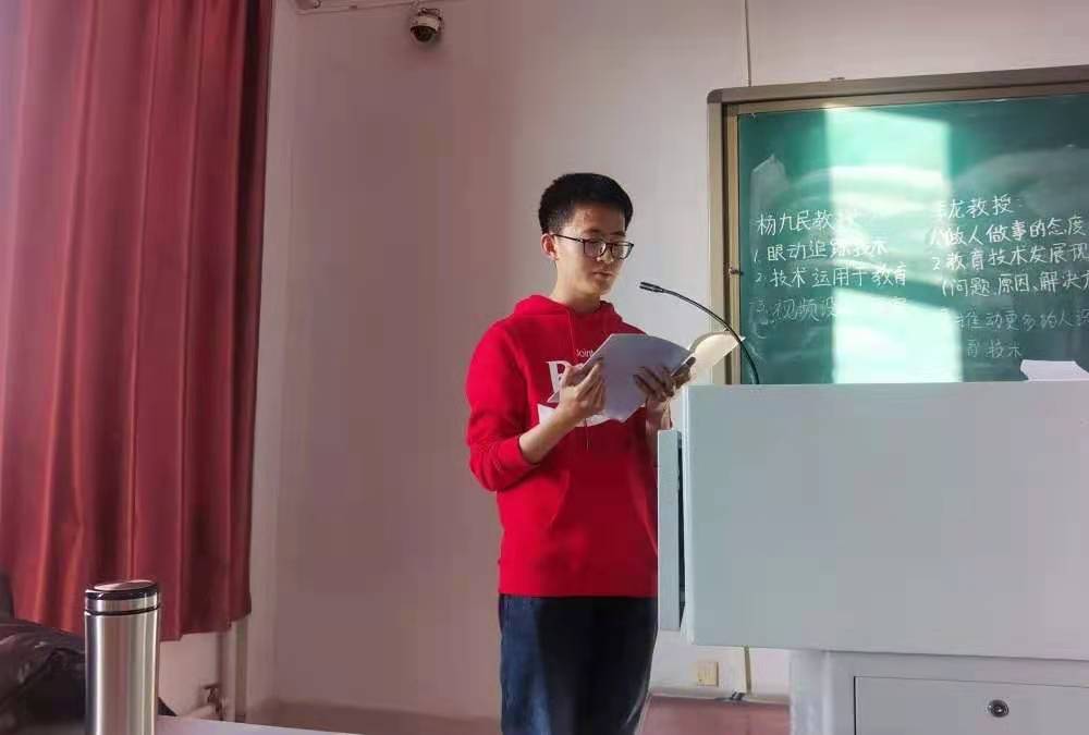 首先进行了对于杨九民教授发言观点总结,简析了杨九民教授对于在线教育视频研究的发现与所得结论。并谈到学习心得:应从我们身边微小事物着手,探寻与发现可以提高我们教育绩效的方法,更好的发挥我们教育技术用于辅助教学的能力。其次分析了陕西师范大学张立国教授讲话观点,简析了张立国教授提出的从传统教育到信息化教育的变与不变的观点以及从中得到的感悟体会。最后对我们yl7703永利官网的李龙教授的讲话进行分析,简述了李龙教授带给新生们的印象,及李龙教授所阐述的教育技术发展的前世-今生-未来和后教育技术时代到来我们应该关注的方向。通过一天的学习讲座,使得我们对教育技术学有了一个全新的认识,教我们应该学习李龙教授“一生只做一件事,一生做好一件事”的学术精神,争取向这些学术大家一样,可以发出一句或几句属于我们自己的声音,为我们教育技术学科的发展尽自己的一份绵薄之力!