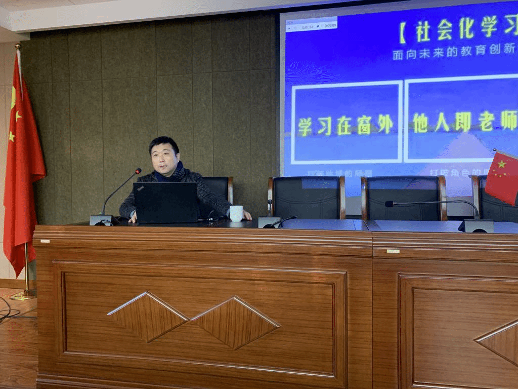 白欣教授首先提出社会化学习是面向未来的一种教育方式,就社会化学习的目标、方式进行了深入细致的介绍,并提出通过高阶思维问题走向社会化学习的路径,通过呈现案例让与会者明了如何引导学生有观点地表达与交流,做有深度思考的教育等主张,并与参会者就相关主题展开积极热烈地交流探讨,结合自身专业发展经历为师生今后的选题和研究领域提出了一些有价值的建议。