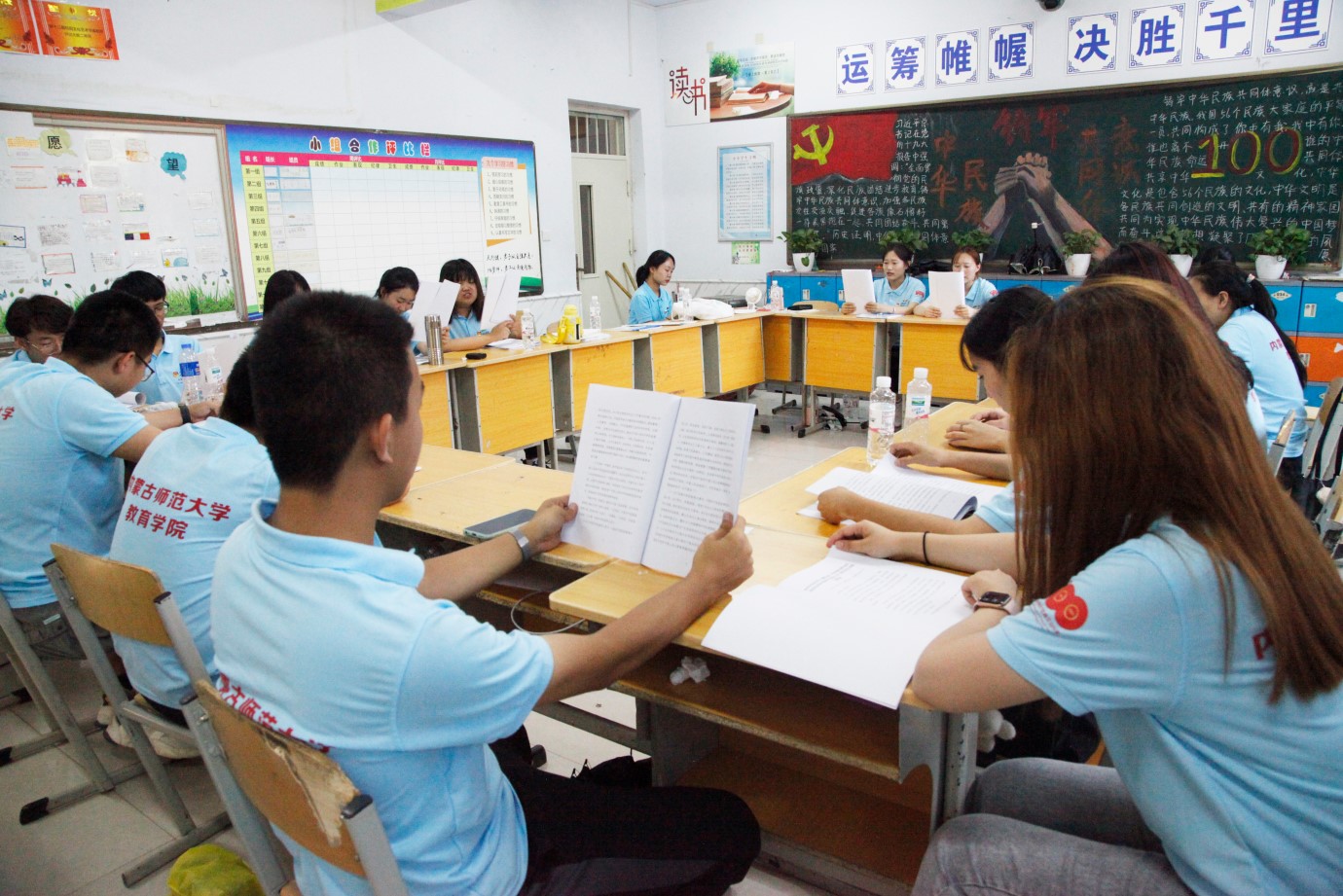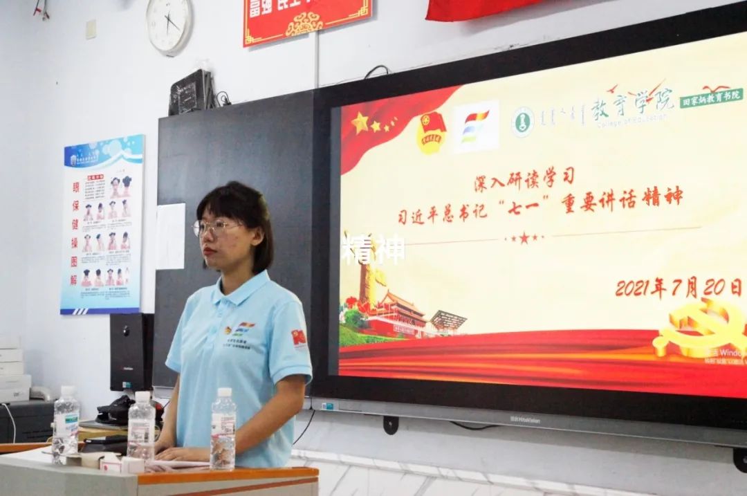 7月20日晚18:30,yl7703永利官网“三下乡”志愿者服务队师生在准格尔旗第九中学综合楼一楼教室深入研读学习习近平总书记“七一”重要讲话精神。