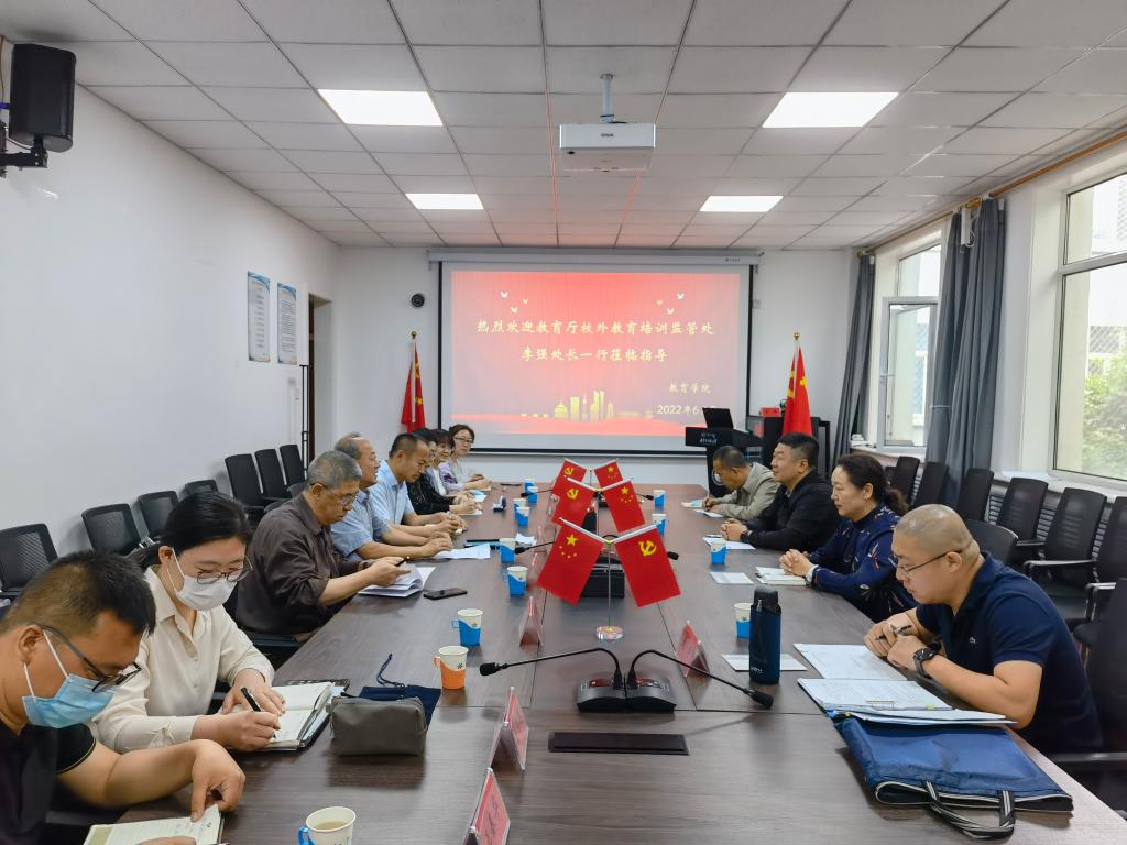 6月8日上午,自治区教育厅校外教育培训监管处李强处长,自治区教育厅基础教育处赵俊清副处长一行来院调研,与永利官网党委副书记、院长米俊魁教授,副院长赵荣辉教授及学院部分教师座谈交流,座谈会由米俊魁主持。双方就进一步深化在“双减”政策落地实施与效果评估、“家—校—社”协同育人机制创新等方面的合作进行了深入探讨,初步拟定了部分合作事项。