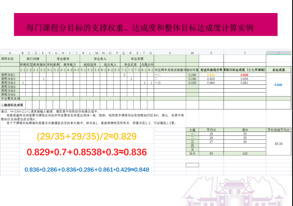 李广海教授从目标达成度的生成逻辑、计算目标达成度的前期准备工作、目标达成度计算、达成度的呈现与举证等四个方面详细介绍了课程及毕业目标达成度的计算方法。此次培训不仅深化了老师们对于做好专业认证工作的重要性的认识,也理解了计算目标达成度的基本原理,掌握了计算目标达成度的方法。