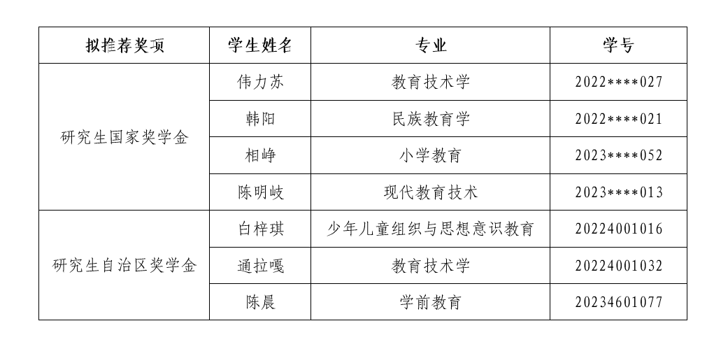 依据《yl7703永利官网研究生奖学金评选办法》(校发[2022]54号)和《关于做好2024年度研究生各类奖学金评审及材料报送工作的通知》文件精神,经过学生申请、班级推荐以及学院公开答辩,拟推荐以下学生分别申报研究生国家奖学金和研究生自治区奖学金。