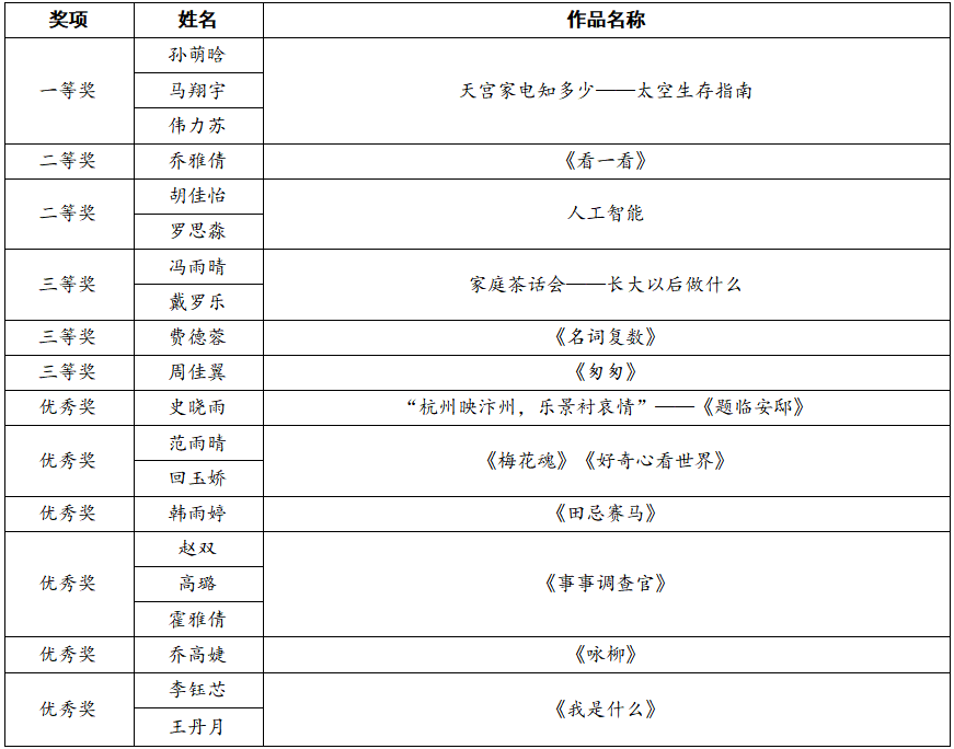 获奖名单