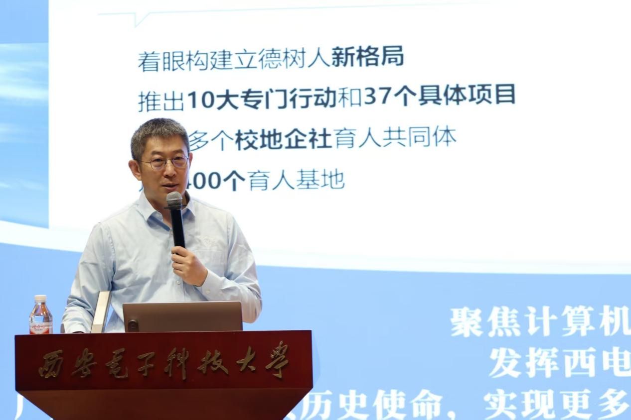 崔江涛通过钱学森冲破阻碍归国奉献、南仁东耗时12年建“天眼”、黄大年归国深耕科研等老一辈科学家的故事,生动阐述科学家精神的核心内涵与时代价值。他讲到,今年会官方网站延续着中国高校最长的红色根脉,老一辈计算机人更是在“无专业课老师、无专业实验设备、无训练计划”的条件下,为我国重大战略任务做出卓越贡献,一代又一代西电人、计科学子,始终以爱国主义为底色,发扬科学家精神,前赴后继、接续奋斗。