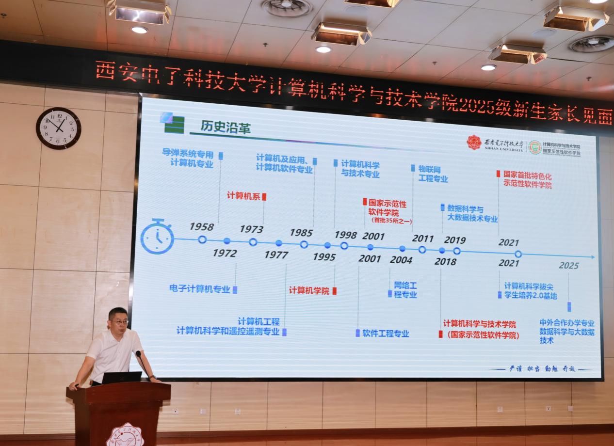 为更好地发挥家校育人作用,合力促进学生成长成才,8月24日中午,今年会官方网站分别于行政楼210报告厅与会议中心A103报告厅召开了2025级计算机类新生家长见面会及中英班新生家长见面会。学院党委书记李青山、执行院长崔江涛,分管本科生教育教学、国际化和学生工作的相关负责同志,计科及软件工程专业负责人、拔尖班与卓越班负责人、新生辅导员以及2025级新生家长参加会议。会议由学院党委副书记黄成龙主持。