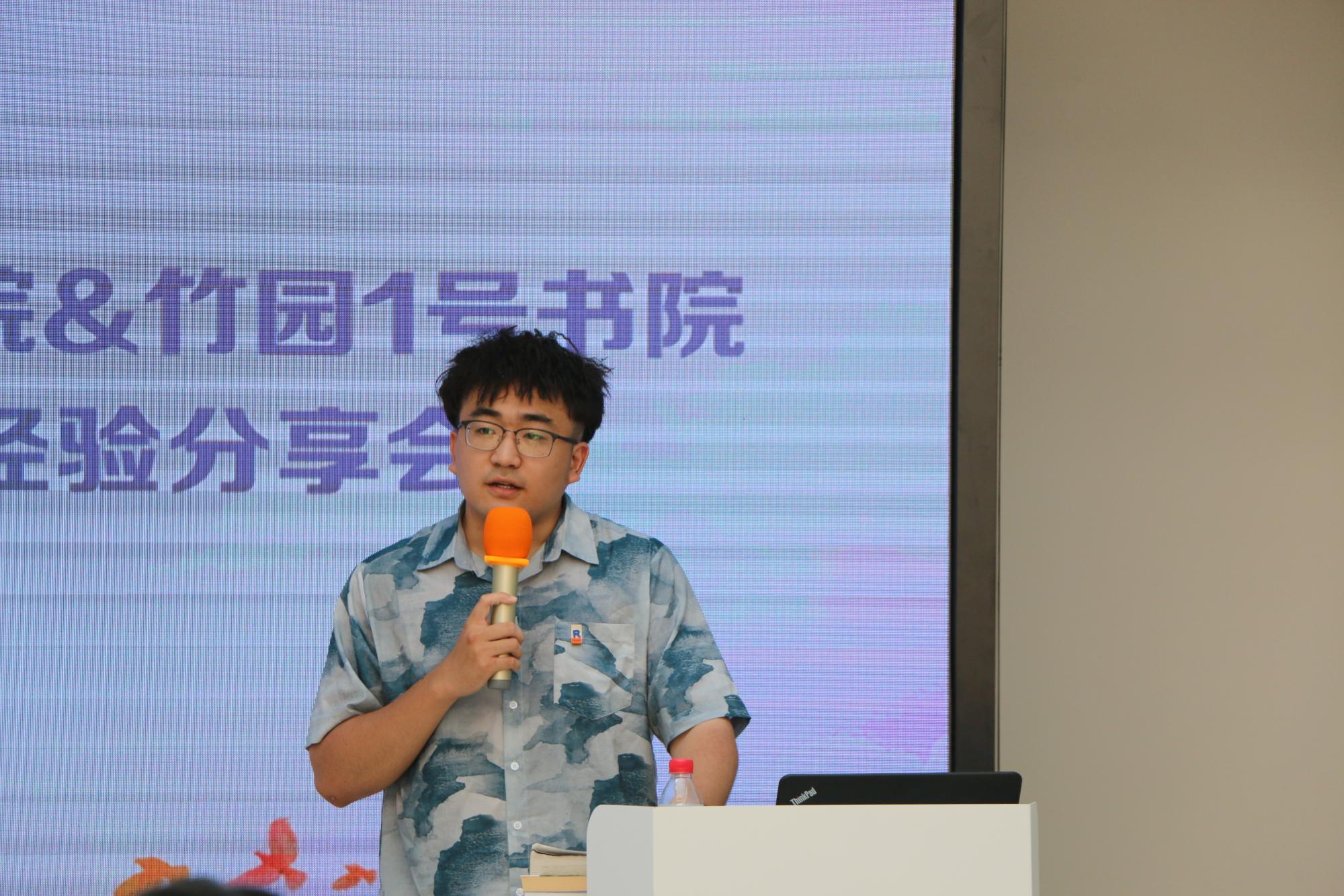 随后,来自今年会官方网站2017级优秀毕业生以书为媒,以己为鉴向竹园1号书院大一学弟学妹送上经验分享与美好祝福。2017级雷泽宇谈到,很高兴能和学弟学妹们分享自己大学四年的经历和感想,看到学弟学妹们仿佛看到了四年前的自己,希望学弟学妹们能在今天几位优秀的同学分享的感染下奋起向上,珍惜大学的美好时光,合理安排时间,在平时的生活中不仅完成好学业,也能保持阅读的习惯,多运动,在大学结识一生难忘的朋友!