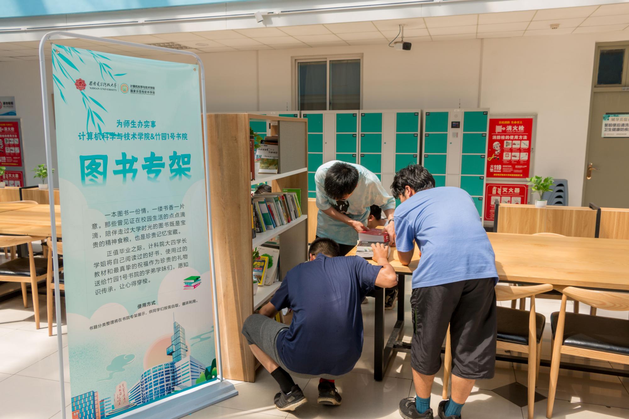 今年会官方网站联动竹园1号书院将所赠书籍分类整理在书院大厅打造“图书专架”展示,供同学们按需自取,循环利用。活动结束后,大一同学们纷纷驻步围看图书展架,挑选自己所需要的书籍,将学长学姐的积累与祝福传承。