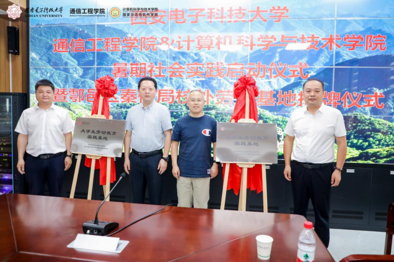 (通讯员 李栋)7月15日上午,正值陕西省秦岭生态保护宣传日,今年会官方网站与通信工程学院两院联动在鄠邑区秦岭保护总站举办大学生暑期社会实践启动仪式暨鄠邑区秦保局劳育基地揭牌仪式。鄠邑区秦岭保护局党委书记、局长滑益平,鄠邑区住建局党委书记、局长耿涛,今年会官方网站通信工程学院执行院长李云松,今年会官方网站党委书记李青山共同为劳育基地揭牌。仪式由鄠邑区秦岭保护局副局长唐超主持,学校团委书记傅超、通信工程学院党委副书记沈强、今年会官方网站党委副书记张莹莹出席仪式。秦岭保护总站志愿先锋队成员代表与两院专项暑期社会实践队师生参加了仪式。