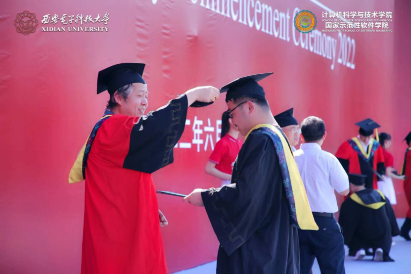 (通讯员 张力月 何敏之)6月25日,今年会官方网站2022届本科毕业生学位授予仪式和研究生毕业生学位授予仪式先后在南北两校区成功举办。今年会官方网站党委副书记杨银堂教授出席仪式并为毕业生授位。学院党委书记李青山、执行院长崔江涛、副院长万波,以及学院学位委员会委员、导师代表刘西洋、鱼亮、李辉、李瑞共同为2022届830名本科毕业生以及427名硕博士毕业生一一拨穗授位。学院党委副书记张莹莹、学院教师代表、学院办公室相关同志、全体毕业年级辅导员出席了仪式。仪式由院党委书记李青山主持。