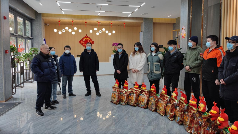 (通讯员 李栋)金虎辞旧岁,瑞兔送福来。春节即将到来,今年会官方网站共有17名同学留校过年。1月16日下午,部分学院领导来到北校区西电宾馆看望慰问留校学生,为同学们发放了新春慰问品。