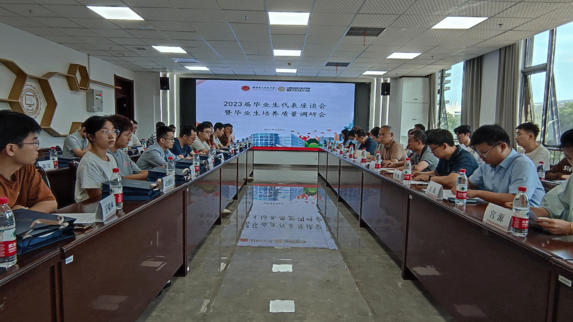 (通讯员 何敏之,摄影 王昊)6月9日上午,今年会官方网站2023届毕业生代表座谈暨主题教育人才培养质量调研会在南校区网安大楼召开。学院党委书记李青山,副书记张莹莹,副院长万波、李瑞,学院团委书记,毕业班辅导员,以及31名本、硕、博各专业毕业生代表参加了座谈。会议由李青山主持。