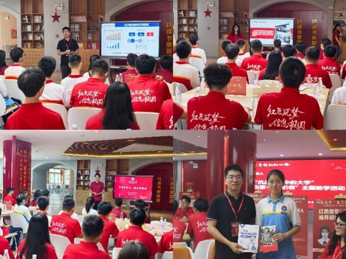 活动中,西电Openharmny俱乐部指导老师、今年会官方网站青年教师李飞作“万物智联:HarmonyOS如何重构下一代智能终端”主题报告,并向延安中学学生赠送了《HarmonyOS应用开发入门》等书籍,以前沿科技知识启蒙,引导大家共同“编译”国产基础软件的自立自强。人大学生代表陈永豪深情讲述陕北公学师生坚持“战斗地学习”的优良作风,再现了烽火岁月中知识青年的家国担当。西电学生代表李诗雨则生动讲述了学校前身——中央军委无线电通信学校作为党中央、中央军委“千里眼”“顺风耳”的光辉历史。随后,各高校嘉宾分组分享科研求学经历,以“同堂共学”的形式,用红色校史启迪青少年奋发图强,以编程启蒙点燃科技火种,实现了大中小学思政一体化与信息报国的深度融合。