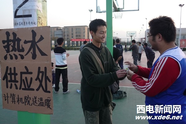 冬季寒冷,又正值甲流肆虐,为了同学们的健康,为了大家在这个冬天依然能全力比赛,计算机院学生会也展开了与寒冷的斗争。计算机院学生会以“送温暖”为口号,在每个比赛场地设立热水供应处,向所有同学提供热水。于是,在每个项目的每场比赛,总能看到这样的身影,他们与暖水瓶相伴,尽管寒冷,仍是双眼闪烁着关切的光芒,不断地把热水和灿烂的笑容送给各位同学。当他们看到同学们的笑容,看到同学们在球场上拼搏的身姿,看到大家在比赛中赛出风格赛出水平,一天的疲惫顿时一扫而光,剩下的只有阳光般的笑容。