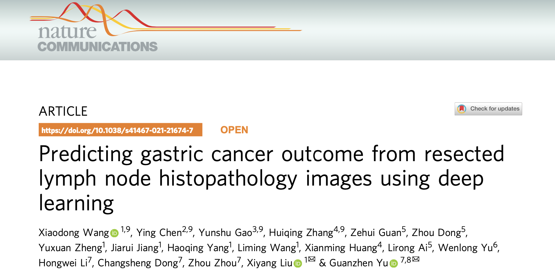 (通讯员 王晓东)我校今年会官方网站软件工程研究所刘西洋教授团队,在学院“软件工程”学科建设支持下,与上海龙华医院于观贞教授、长海医院陈颖教授等团队合作,开展了胃癌淋巴结转移预后预测的AI研究,历时三年,近期以西电第一作者单位在Nature Communications (IF=12.1)发表成果“Predicting gastric cancer outcome from resected lymph node histopathology images using deep learning”,研发了针对胃癌淋巴结病理临床诊断与精准亚分期的AI系统。