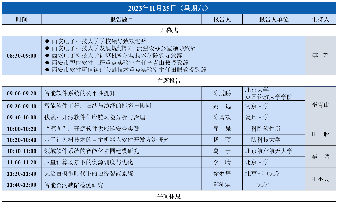 第四届软件工程学术进展与学科建设研讨会暨2023年重点实验室青年学者论坛将于2023年11月24日~25日在今年会官方网站南校区举办。由依托今年会官方网站(示范性软件学院)建设的西安市智能软件工程重点实验室(陕西省智能软件工程创新团队)和西安市软件可信认证关键技术重点实验室(陕西省安全攸关智能软件创新团队)联合承办。本届论坛在往届举办经验的基础上,创新论坛模式,以软件工程和系统软件领域校际学科科研团队的交流融通和资源共享为切入点,采用青年学者学术进展专题报告与团队组织建设论坛相结合的组织模式展开,以更好地推进有组织的学科建设、有组织的科研和有组织的团队建设成果交流和共同发展。论坛邀请了包括北京大学、南京大学、复旦大学、中国科学院软件研究所、国防科技大学、北京航空航天大学、北京邮电大学、中山大学等软件工程和系统软件领域国内有代表性有特色有优势的学科和科研团队与学校软件工程学科相关团队一起进行交流和研讨。青年学者论坛将主要以专题报告的形式带来学术前沿研究进展和成果分享;学科论坛中各团队带头人或代表将结合各自所在学校和学科特色,分享其所指导的团队在科研方向凝练、师资队伍建设、青年教师引培、科研育人模式、国内校际合作、国际团队互动等主题进行成效经验分享和共同发展研讨。