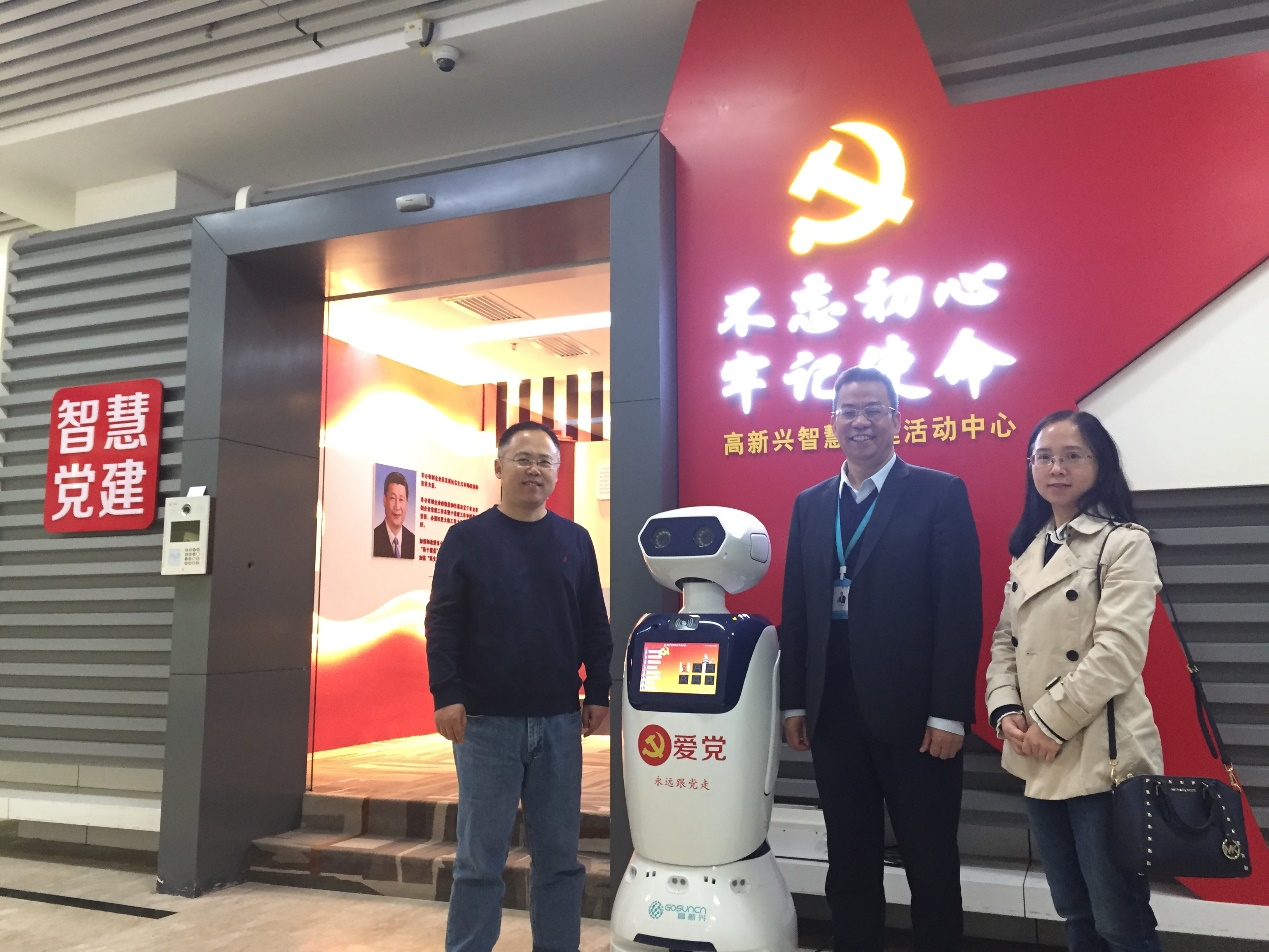 调研组一行特别与学院在高新兴集团实习的研究生深入交流,关心研究生在企业的工作生活情况,就研究生联合培养相关问题进行交流,充分听取意见建议。重点参观了高新兴集团智慧党建活动中心,就院企党建工作进行现场讨论,该企业党建活动中心的架构设计为学院党建工作阵地建设提供了思路。