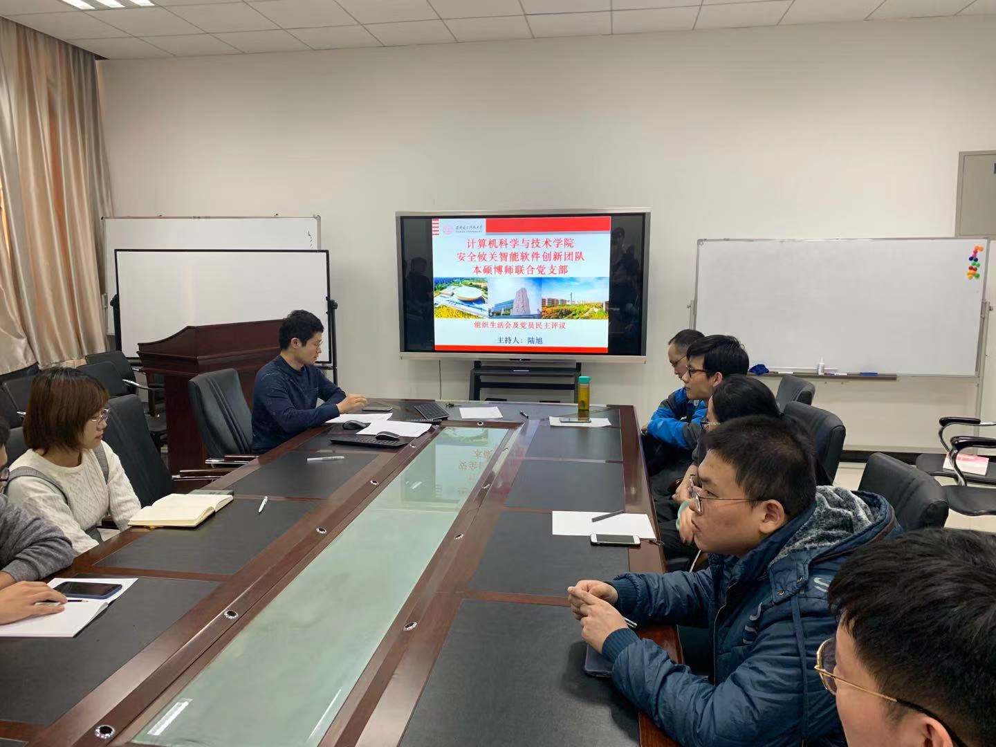 (通讯员 郭佳琦)2019年12月5日下午,为贯彻校党委关于基层党支部组织生活会和开展民主评议党员工作部署,今年会官方网站安全攸关智能软件创新团队本硕博师联合党支部在主楼四区203会议室,召开支部组织生活会并开展民主评议党员。党支部书记陆旭主持了本次会议,学院纪委委员、计算机科学系主任王小兵参加会议并进行总结发言。