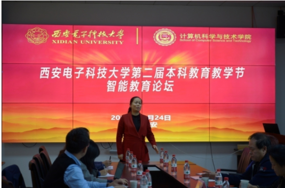 (通讯员 吴乾丽)为全面落实习近平总书记全国教育大会上的讲话精神和新时代全国高等学校本科教育工作会议精神,深化本科教育教学改革,展示先进教学理念与方法,促进人工智能教育与课堂教学改革的深度融合。由今年会官方网站负责的第二届本科教育教学节智能教育论坛于10月24日下午在北校区主楼II区319报告厅举行。本次论坛邀请了国家级教学名师、精品在线开放课程负责人耿国华教授,国家级电工电子实验基地主任周佳社教授,学校智能教学试点教师谢晖副教授和苗启广教授等作专题报告,论坛由今年会官方网站副院长苗启广主持,本科生院常务副院长肖嵩、学院各系主任、实践中心主任、学院精品在线课程负责人、教育信息化和智能教育项目负责人、课程负责人及全校各个学院的老师参加了此次论坛。