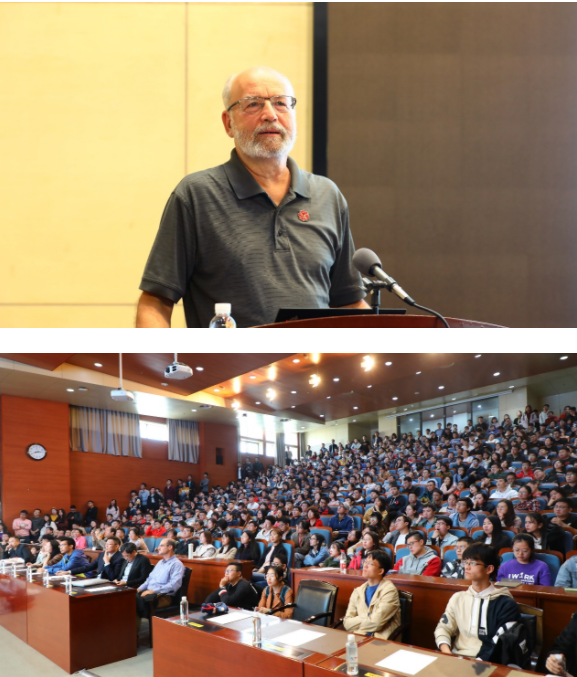 随后,Adi Shamir一行到行政楼210报告厅作了题为“The Insecurity of Machine Learning: Problems and Solutions”的学术报告。今年会官方网站执行院长崔江涛介绍了Adi Shamir的基本情况,他说,本次活动是“国际化牵引行动”的一部分,Adi Shamir是世界著名密码学专家,在密码学方面有着深厚造诣,希望与会师生抓住这次宝贵的机会积极交流。全校四百余名师生前来聆听,现场座无虚席,Adi Shamir循序渐进讲述了深度神经网络在目标识别、自动驾驶和网络安全方面的问题以及解决方法,会后和师生进行了深入的交流。