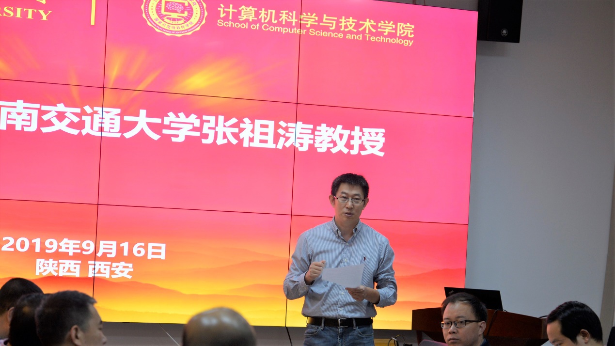 报告开始前,崔江涛对张祖涛表示了热烈欢迎,向与会教职工简要介绍了张祖涛的工作经历以及教学科研方面的学术贡献和研究成果。他谈到,学院正全面发力精品在线开放课程建设,张教授在此方面有着深刻的研究、丰富的成果,已完成12门国家级精品在线开放“慕课群”课程建设,希望与会老师能抓住机会,积极学习。