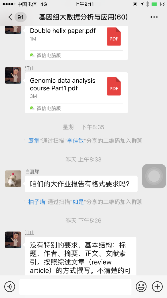 《基因组大数据分析与应用》课程微信交流群