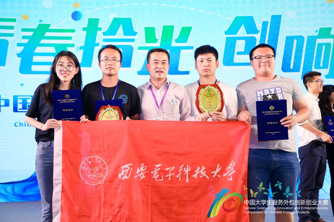(通讯员 房慧娟)2019年5月24日,由教育部、商务部等联合主办的第十届中国大学生服务外包创新创业大赛(简称“服创大赛”)在江苏无锡落幕。今年会官方网站副校长石光明教授,今年会官方网站学院院长苗启广教授出席大赛颁奖典礼。西电的“掌控科技团队”与“竹园团队”分别荣获“创业实践类”一等奖和“企业命题类”二等奖。