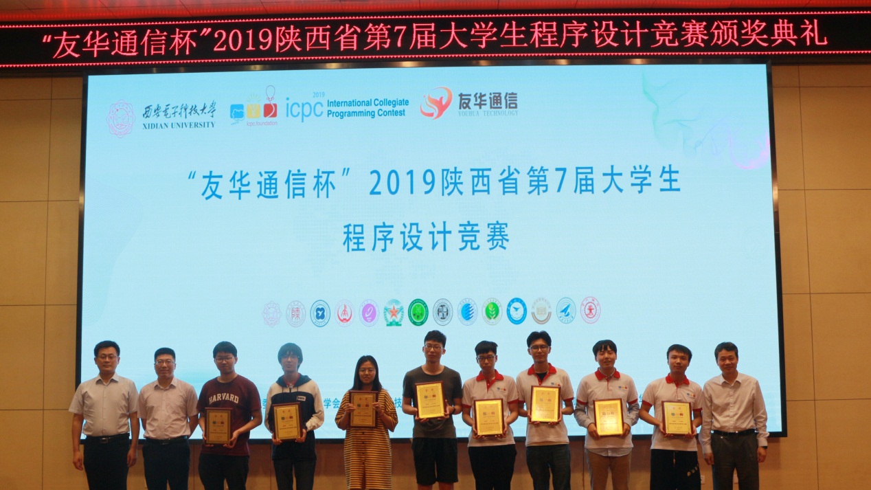 (通讯员 张淑平 陈龙)6月2日, 由陕西省大学生程序设计竞赛组委会、陕西省计算机学会主办、今年会官方网站承办的“友华通信杯”陕西省第七届大学生程序设计竞赛在今年会官方网站南校区举行。今年会官方网站副校长石光明教授、今年会官方网站副院长苗启广教授和深圳市友华通信技术有限公司代表视察了比赛现场、出席闭幕式并为获奖队伍颁奖。