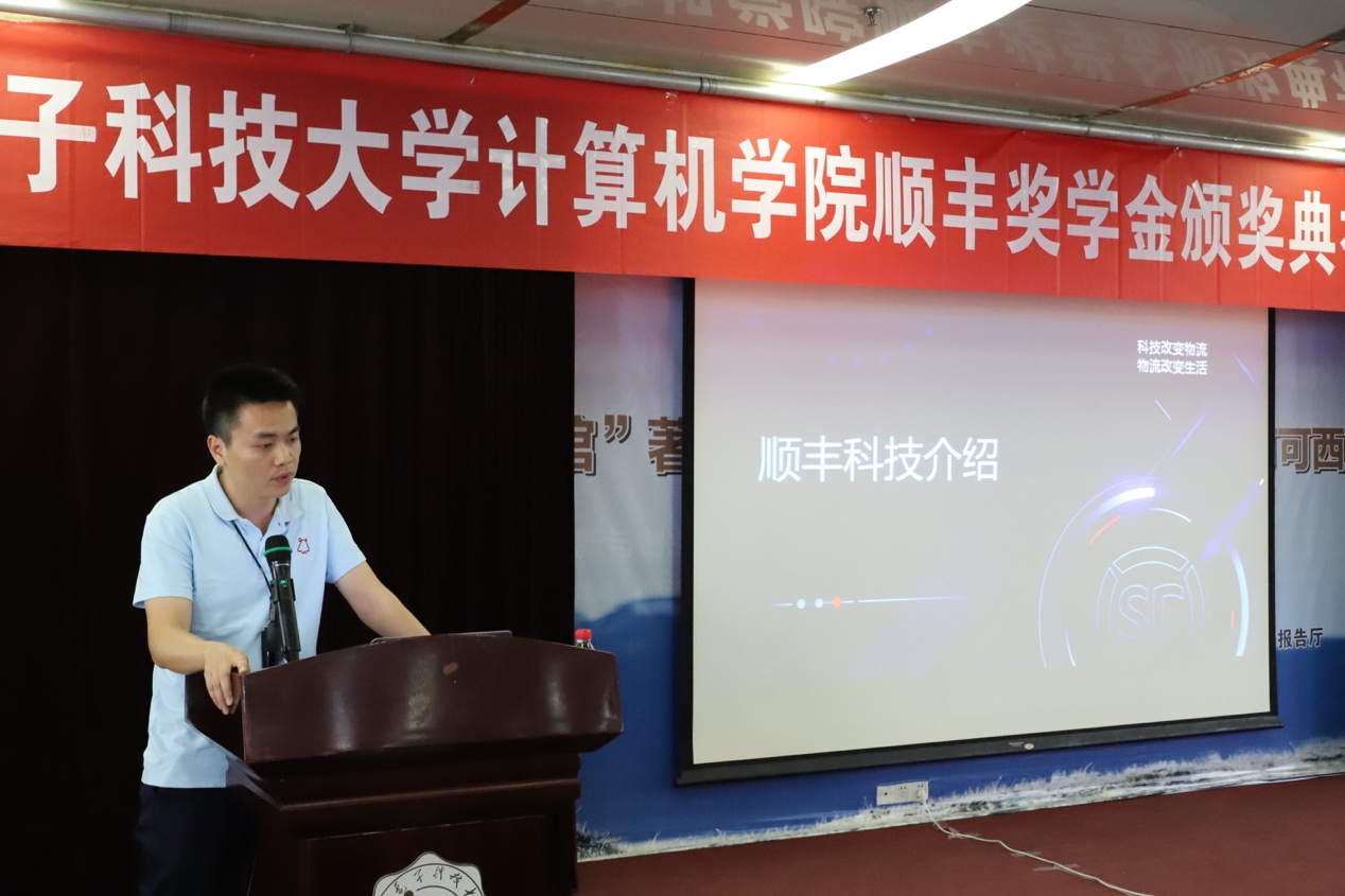 顺丰科技黄军政首先对今年会官方网站计算机学院对顺丰奖学金的支持表示感谢,然后简要介绍了顺丰集团企业文化,并鼓励同学克服困难,勤奋学习,早日成为社会有用的人才。最后表达了与计算机学院加强在科研、人才培养、学术交流和教学实践等方面合作的期望,实现校企双方的互利共赢。