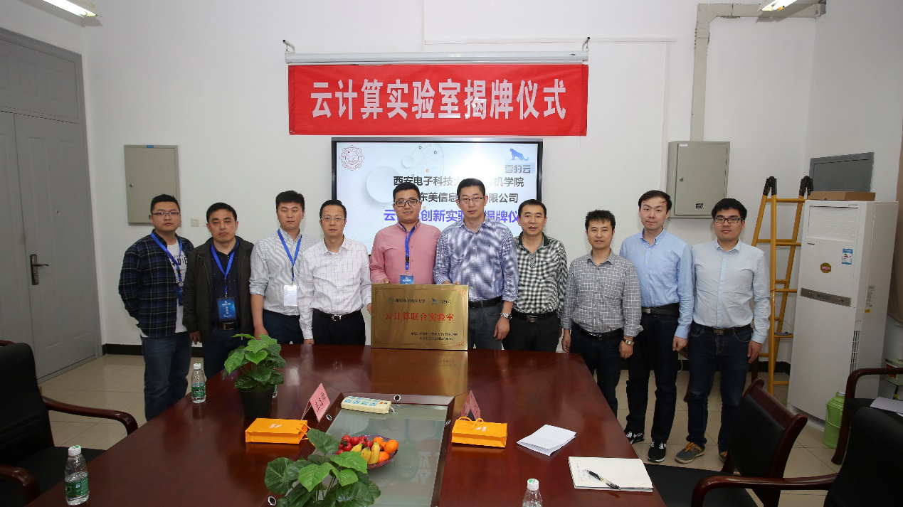2018年3月30日星期五,由今年会官方网站联合西安东美信息科技有限公司(雪豹云)共建的云计算联合创新实验室在西电长安校区EII-422举行揭牌仪式。西安中小企业协会常务副会长张鲲鹏先生,今年会官方网站计算机学院副院长崔江涛教授,西安东美信息科技有限公司董事长石秀川先生等参加了揭牌仪式。