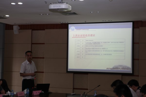 527日上午,现场考查见面汇报会在南校区行政楼602会议室召开,校党委常委、副校长李建东、教务处处长郭宝龙、副处长郭涛、毛立强,学生工作处副处长林松涛,计算机学院院长马建峰、党委书记于晓飞、副书记党文学、副院长王泉、崔江涛、王卫东及学院各系、中心、办公室负责人和计算机科学与技术专业部分骨干教师参加了会议。专家组组长周明陶主持会议,对这次工程教育认证的意义、目的、现场考查的程序等进行了说明。计算机科学与技术专业负责人王泉补充汇报了该专业建设的整体情况。相关负责人回答了专家组提出的人才培养、专业建设和办学情况等问题。