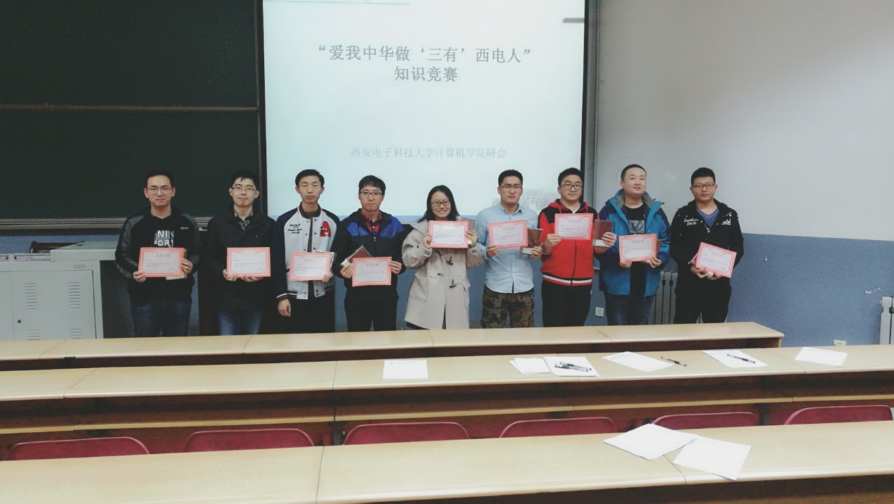 为了提高同学们对专业知识的学习兴趣,增强专业知识学习能力,强化专业技能,计算机学院研究生会举办了第九届“爱我中华,做三有西电人”知识竞赛。希望通过这次活动的开展,让更多的同学了解计算机科学,提高同学们的计算机专业知识。同时,丰富同学们的知识积累,也为同学们提供一个自我展示的平台。