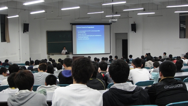5月16日晚,计算机学院邀请博士研究生卢迪为09级本科生做学涯规划报告