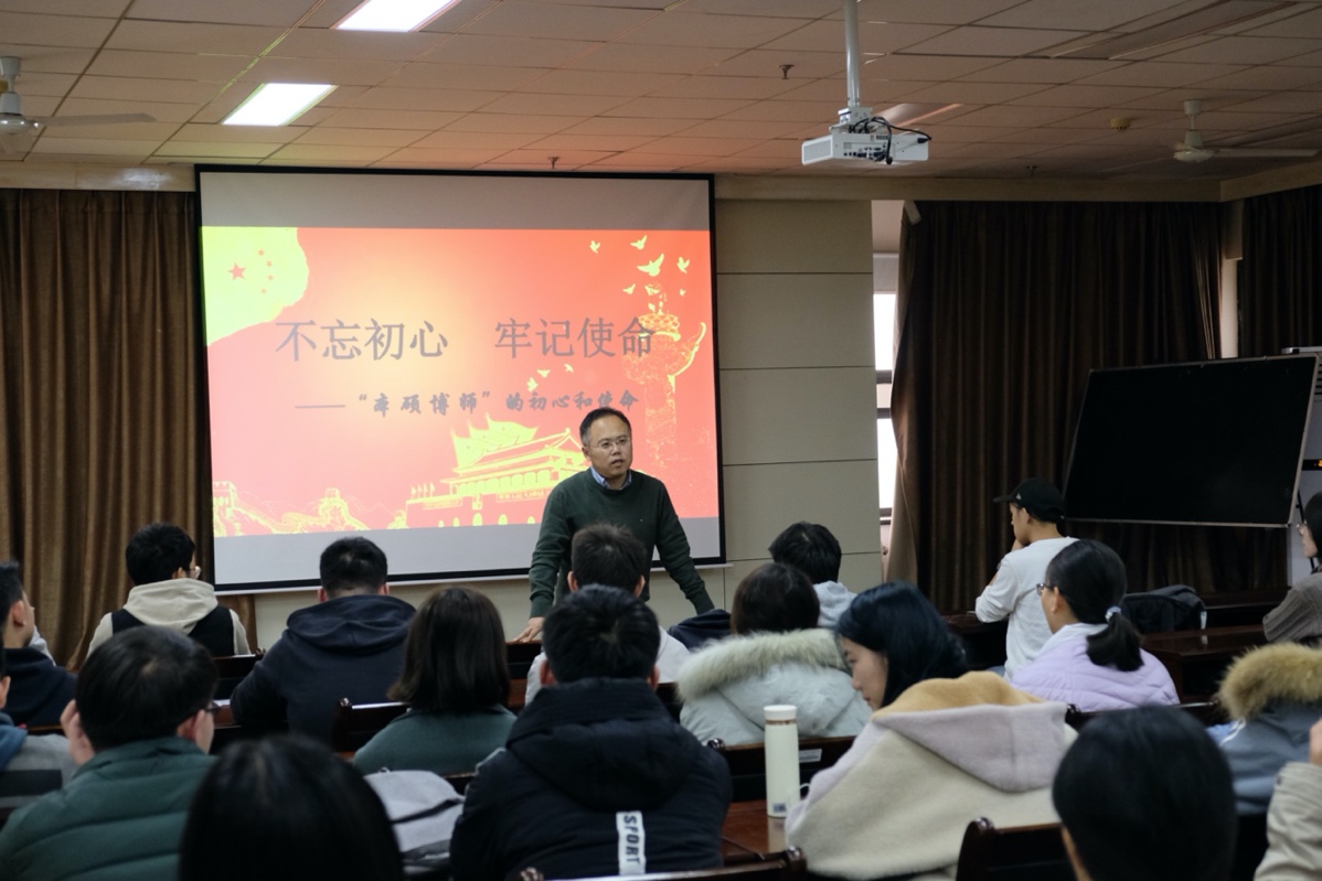 随后,李书记谈到,本硕博师联合党支部的初心是在本科生、硕士生、博士生、青年教师以及广大非党员同学间传承优良的支部文化,引领各年级同学共同进步。高年级的硕博研究生通过党建生活,在学业、科研、生活等方面传、帮、带低年级学生;党员同学将自身在支部中的成长和进步分享给非党员同学,体现党员对非党员的传、帮、带作用;青年老师通过支部活动与学生深入接触学生,发挥科研育人作用。通过在党支部内部形成从优秀青年教师、博士生、硕士生再到本科生的党员梯队,增进本科与研究生党员、教师党员的交流,培育本硕博师贯通、逐级带动辐射的育人环境,形成有传承的支部文化和党建文化。