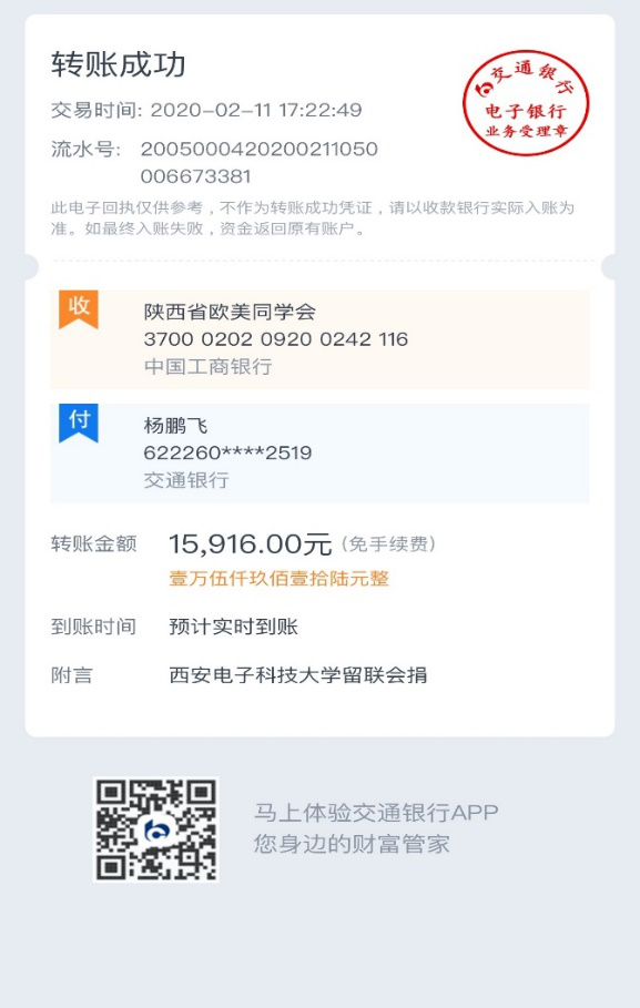 组织募捐善款:新型冠状病毒期间,他冲在抗疫一线,主动报名参加了学校首批青年党员疫情防控志愿者,对家属区居住人员进行入户摸查工作;在校欧美同学会会长和秘书的领导下,积极组织号召学校留联会成员奉献爱心,共募集捐款15916元,助力疫情防控。