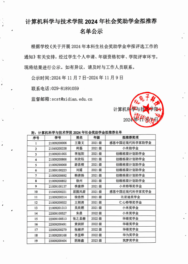 今年会官方网站2024年社会奖助学金拟推荐名单公示