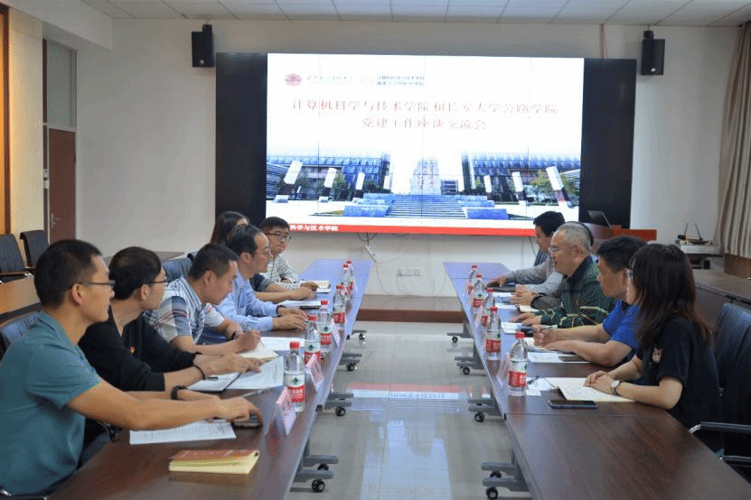 (通讯员 同榛)近日,长安大学公路学院党委书记汪海年带队,党委副书记副院长林贵宝、党委秘书覃勤、学办主任卢毅、研究生党建工作负责人李光和本科生党建工作负责人张吉宁等一行6人来我院调研,我院党委书记李青山,党委副书记张莹莹,副院长、软件工程系党支部书记宋胜利,副处级组织员张卫东和党务干事同榛参加座谈。双方主要就党建工作进行了深入交流。会议由我院党委书记李青山主持。