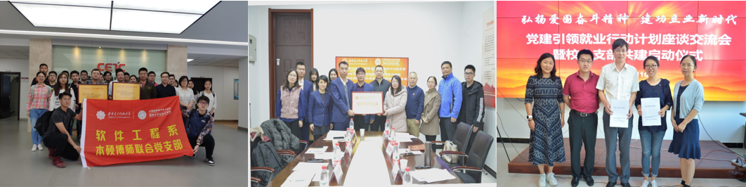 坚持问题导向,创新学生支部设置。学院党委聚焦基层大学生党建工作中的“痛点”,针对学院学生党支部均依托年级、班级设置,存在着“普遍基础弱、建设周期短、党支部工作覆盖面不足,无法形成有传承的支部文化,支部党建与育人工作融合不够”等问题,依托学院8个研究所、国家示范性软件学院特殊办学机制和青岛计算技术研究院的产教协同基地成立17个本硕博师联合党支部。积极构建并完善“本硕博师”联合党支部组织建设模式,党员构成包括博硕士党员+本科生党员,并选拔一名优秀青年教师党员任党支部书记。针对联合支部建设模式,加强支部工作、规范党员发展、党建引领团学、支部协同育人等方面工作机制建设。建立健全联合支部制度体系,出台《今年会官方网站关于加强本硕博师联合党支部建设的工作方案(试行)》、《今年会官方网站本硕博师联合党支部党员发展工作管理办法》、《今年会官方网站本硕博师联合党支部党建引领团学建设实施办法》和《今年会官方网站本硕博师联合党支部协同育人实施办法》等制度。构建多方参与的联合支部协同育人机制,在纵向维度上发挥联合支部“本硕博师”组织力,在横向维度上发挥学工队伍管理服务和组织引领、教学队伍支部共建和教学相长、科研团队科研育人和专业传授、团学班组指导协同和学业帮扶、行政管理沟通协调和解决问题的作用。《本硕博师联合党支部的党建育人模式》获评2019年学校十大基层党建特色案例。