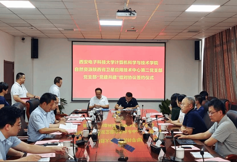 (通讯员 何敏之 邢智琪)8月24日下午,西电今年会官方网站大数据与视觉智能研究所本硕博师联合一支部与自然资源陕西省卫星应用技术中心二支部结对共建签约仪式在自然资源陕西省卫星应用技术中心举办。今年会官方网站党委书记李青山,大数据与视觉智能研究所所长、网教院院长苗启广,学院党委副书记张莹莹及联合党支部师生党员代表一行12人赴中心调研交流并参加签约仪式。