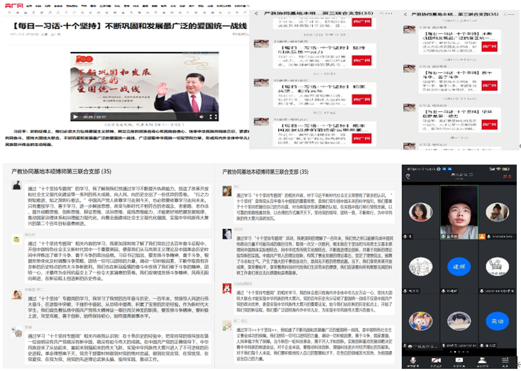 (通讯员 李鑫)12月9日至12月15日,今年会官方网站产教协同基地本硕博师第三联合党支部线上举办十九届六中全会精神专题学习周活动。此次活动分两阶段进行,第一阶段围绕“十个坚持”每日发布学习内容到支部群,党员们自主学习并交流学习心得;第二阶段支部集中学习,于12月15日讨论总结。