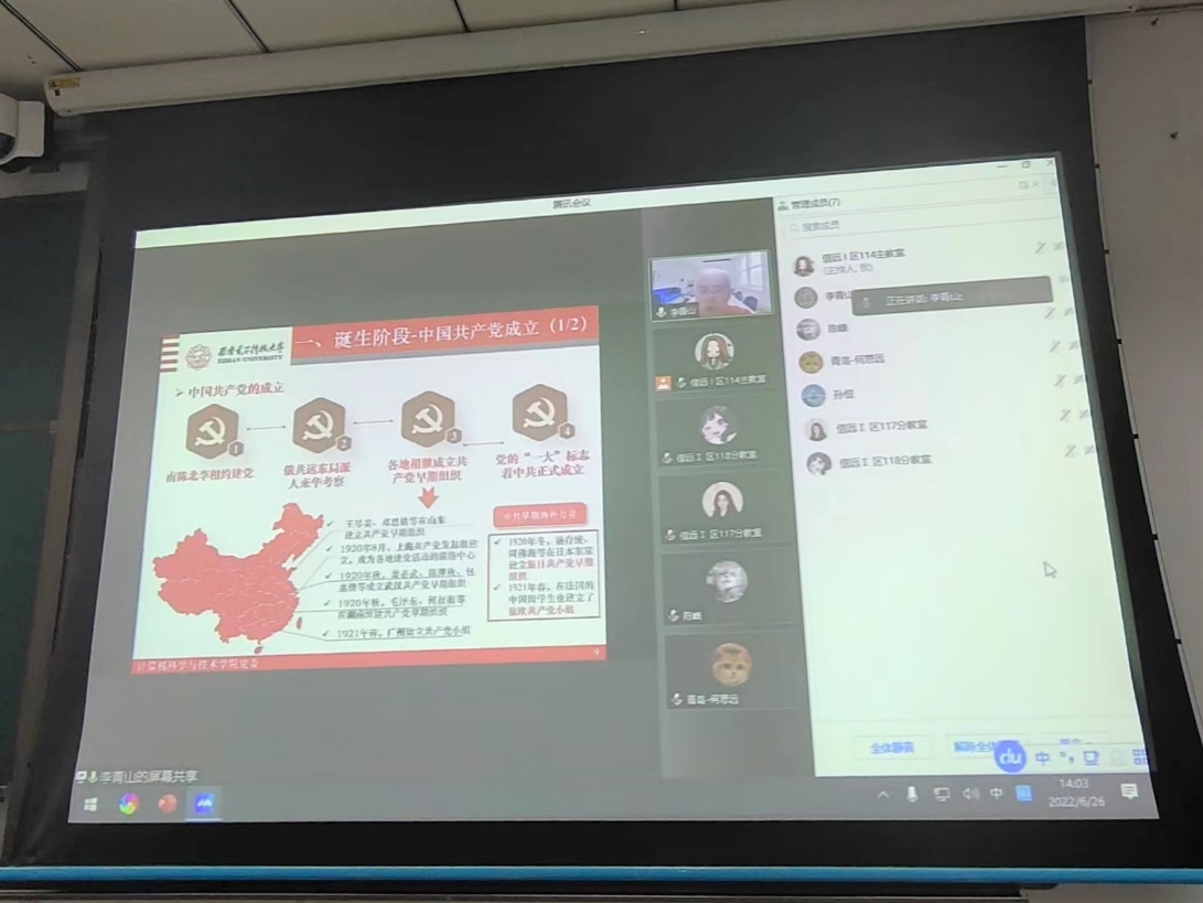 李青山以《学党史传承优良传统悟思想牢记使命担当开新局推进一流建设》为题,从“中国共产党的光辉历程与优良传统”、“西电的红色基因和‘老三系’精神”、“分阶段、分层次开展党史学习教育”等部分带领全体学员进行学习。李青山将国家教育行政学院培训经历融入授课过程,鼓励学员们从党史学习中感悟党的奋斗历程和伟大成就,汲取奋进力量;他全面回顾了西电办学历史和学院建专业历程,介绍了学院近几年在党建、学科建设、科学研究、人才培养、文化传承等方面的情况,鼓励学员们传承西电红色基因和三系精神,以杨孟飞院士等杰出校友为榜样,将个人理想追求融入国家和社会的发展需要,坚定加入党组织的信心和决心,并将学习收获运用到实践中,争取早日加入党组织。