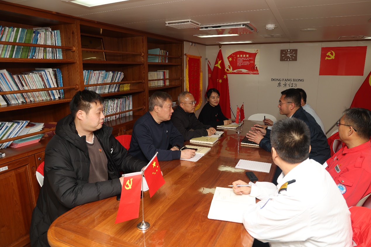 为进一步加强党组织交流,以党建引领双方多维度合作,在行进的“东方红3”科考船上,西电今年会官方网站党委书记李青山,青岛研究院副院长、产教融合本硕博师联合党支部书记向麟海与中国海洋大学船舶中心党总支书记、中国海洋大学船舶中心主任王毅,中国海洋大学研究生院副院长刘海波,东方红3船党支部书记王辉、船长于少杰等共同开展了党组织共建座谈会。