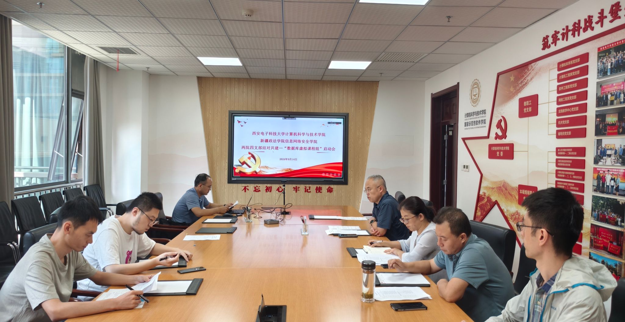 与会成员围绕支部党建、兵团精神、胡杨精神和三系精神传承互鉴等方面开展讨论,并就知识图谱、实践平台、编程思想等方面开展讨论,达成了数据库虚拟课程组建设共识。本次“数据库虚拟课程组”启动会标志着西电今年会官方网站和新政信网院两院四支部结对共建协议有效落实,在合作方式、课程建设、课程思政、校企合作、实践能力提升等方面取得了良好的进展,为促进党建与业务融合推进奠定了基础。