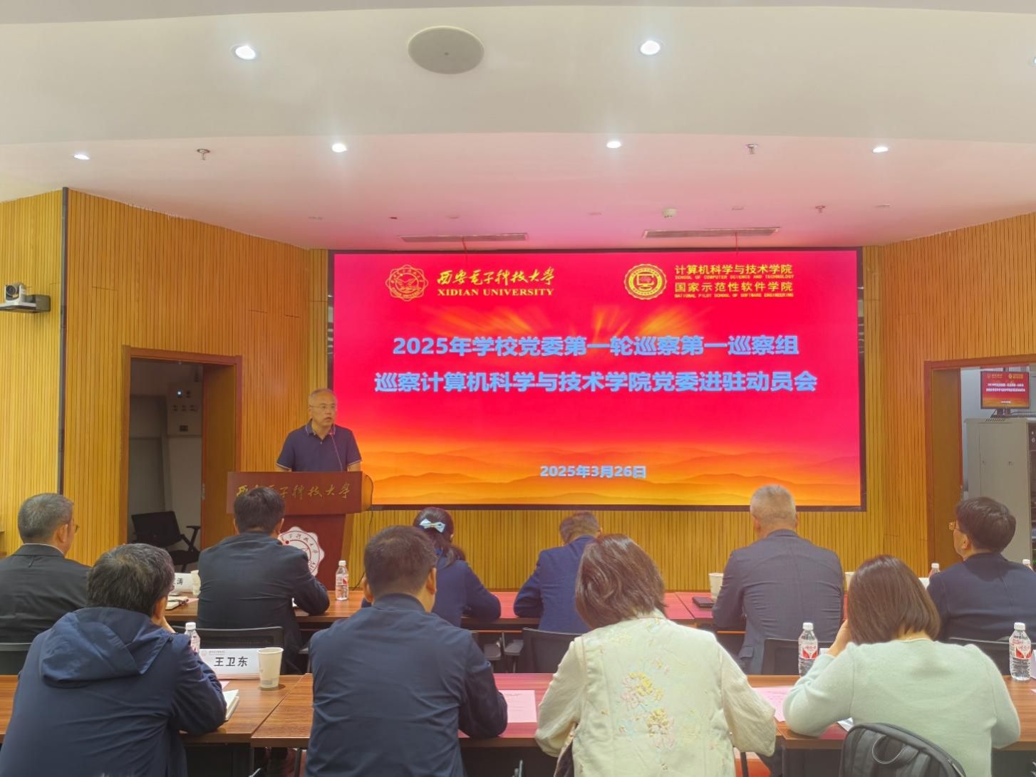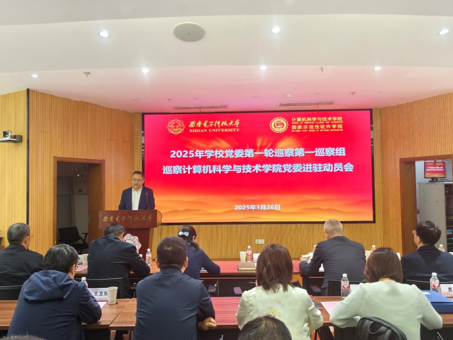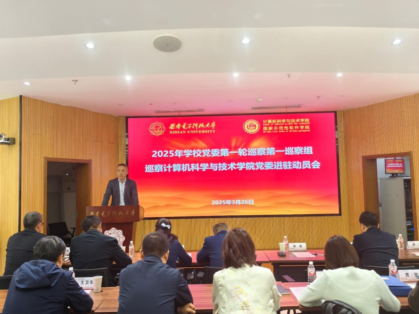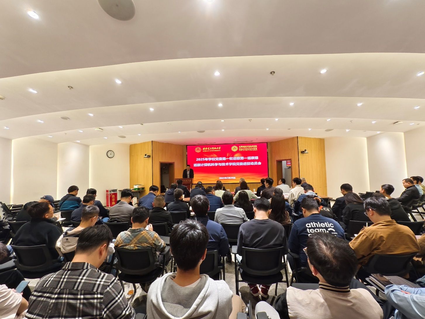 (通讯员 同榛)根据学校党委的统一部署,3月26日下午,2025年学校党委第一轮巡察第一巡察组巡察今年会官方网站党委进驻动员会在网安大楼A-101报告厅召开。校党委副书记、纪委书记郭俊,巡察办负责同志、巡察组全体人员、学院党政班子成员和师生代表等100余人参加。会议由学院执行院长崔江涛主持。